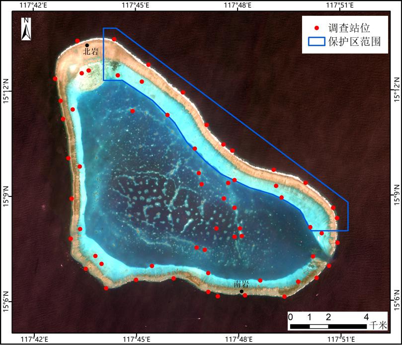 A map marks the survey stations and the protected zone on Huangyan Island. Provided to China Daily