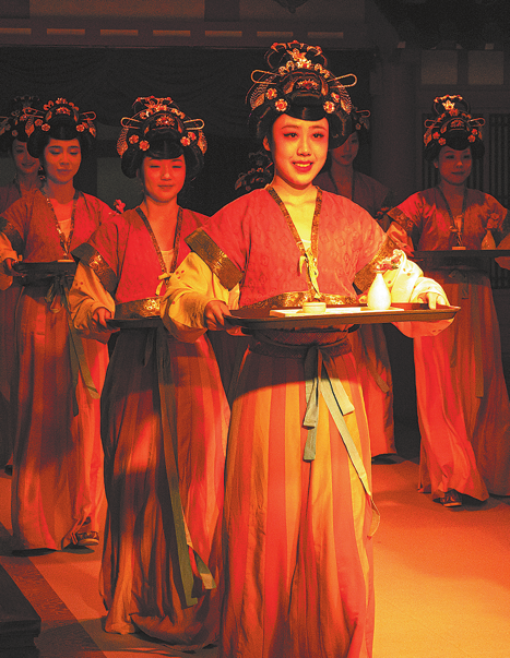 Nearly 1,500 kilometers to the northwest, in the ancient capital of Xi'an in Shaanxi province, a Tang Dynasty (618-907) scene also comes to life over the dining table.