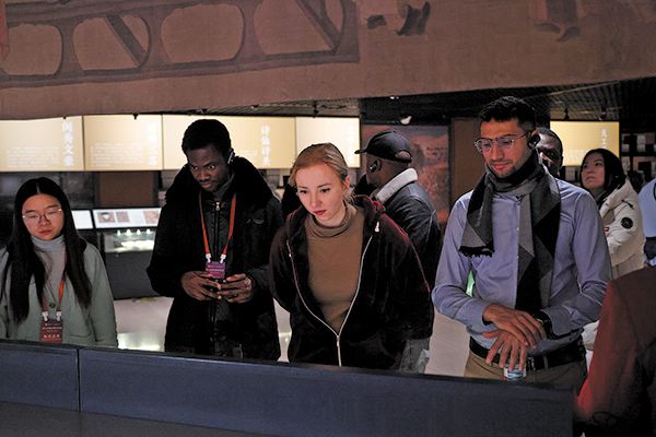 Scholars attending the International Symposium on Young Sinologists and Mutual Learning among Civilizations during a visit to the National Museum of Classic Books.[Photo provided to China Daily]
