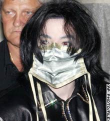 Michael Jackson wears a mask as he leaves a gallery in Berlin, Germany, November 22, 2002.
