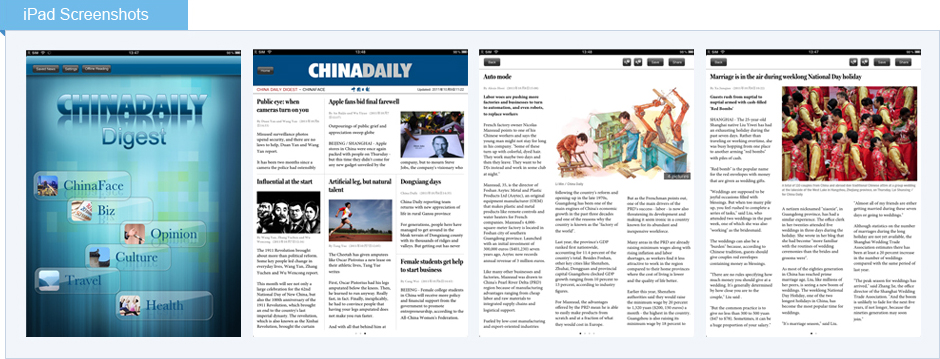 產(chǎn)品薈萃《中國日報》及其網(wǎng)站有關(guān)中國的深度報道、特寫與分析,以及言論板塊精華,為用戶深入了解中國提供了一個廣度與縱深兼?zhèn)涞耐緩健K羌磿r新聞產(chǎn)品的補(bǔ)充和拓展。 |