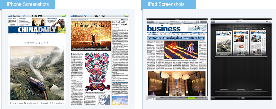 這款產(chǎn)品以電子版形式,在iPhone與iPad上呈現(xiàn)《中國日報》當(dāng)天全部內(nèi)容的紙媒版式設(shè)計。產(chǎn)品融合了新媒體的閱讀體驗,如可以調(diào)整字體大小,與好友分享內(nèi)容,音頻讀報等。產(chǎn)品的推出大大方便了那些喜歡紙媒體驗而又接觸不到印刷版《中國日報》的用戶。 |