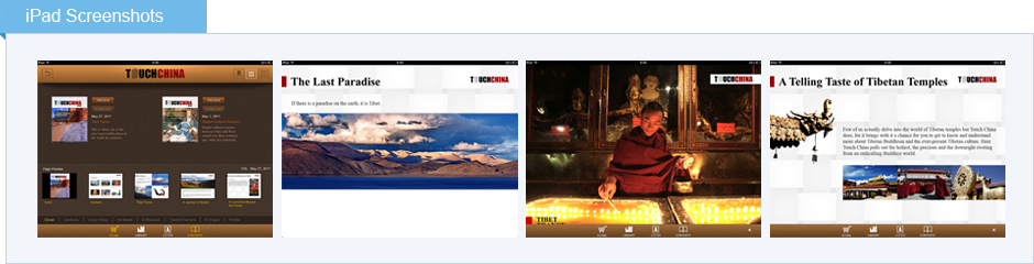 雜志以精美的設計和獨創內容傳播中國文化。它充分整合形、聲、色、觸等感官體驗要素,用戶在愉悅的體驗過程中潛移默化感觸到時尚的中國與傳統的中國是怎樣交相輝映。